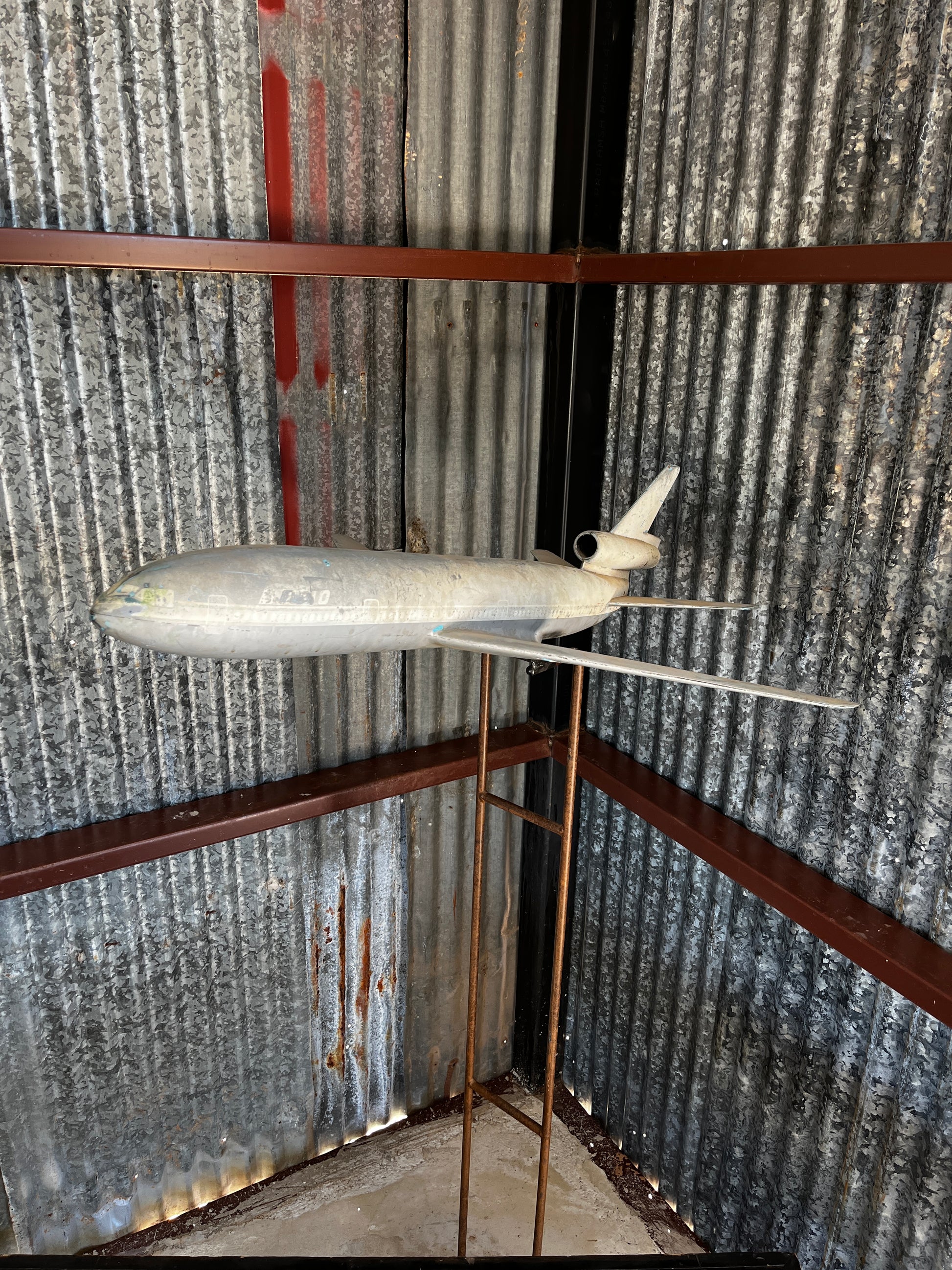 Boeing model plane on steel stand