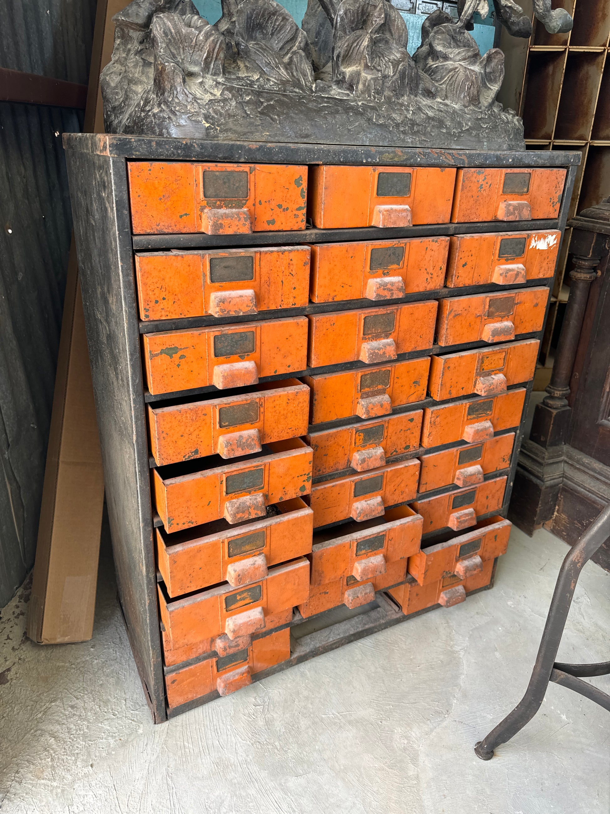 Steel storage unit with shelves