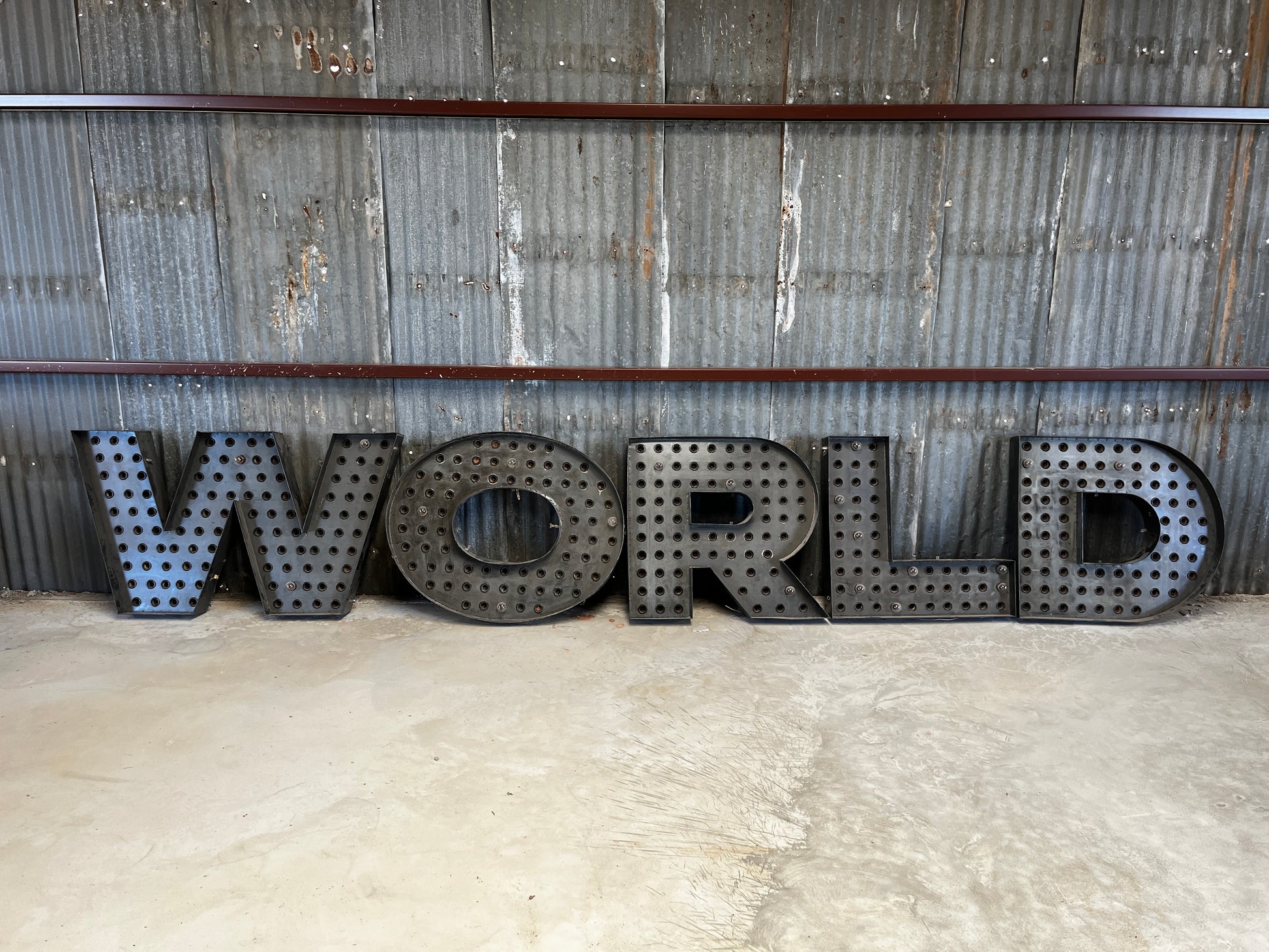 “World” steel letters
